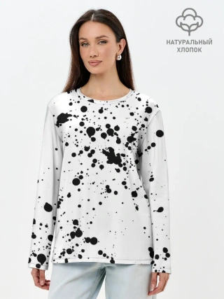 Лонгслив женский. Хлопок / Далматинец - брызги чёрными пятнами
