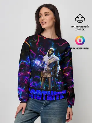 Лонгслив женский. Хлопок / Фортнайт | Повелитель Молний