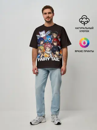 Мужская футболка оверсайз / Fairy Tail logo and heroes