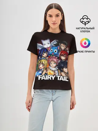 Женская базовая футболка / Fairy Tail logo and heroes