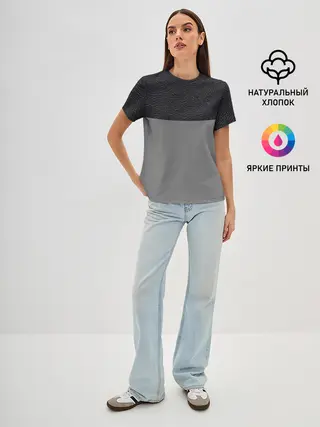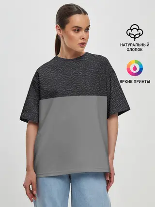 Женская футболка оверсайз / текстура черная кожа рельеф