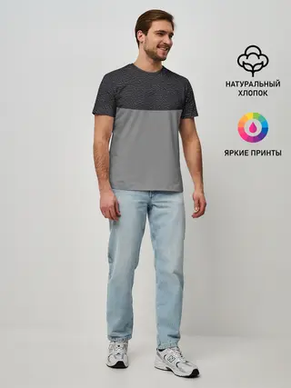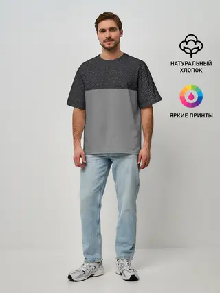 Мужская футболка оверсайз / текстура черная кожа рельеф