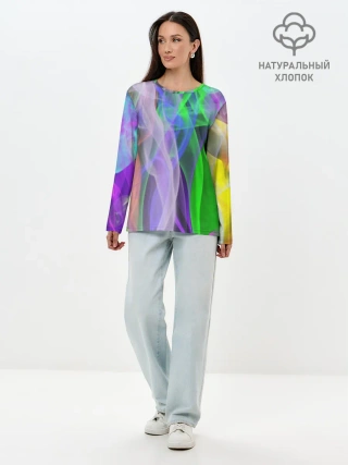 Лонгслив женский. Хлопок / ДЫМ ЦВЕТНОЙ / ОГОНЬ