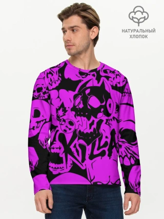 Мужской лонгслив базовый / KILLA фиолетовые черепа