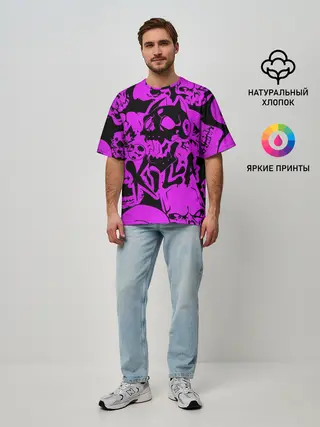 Мужская футболка оверсайз / KILLA фиолетовые черепа