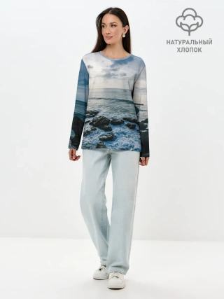 Лонгслив женский. Хлопок / Море