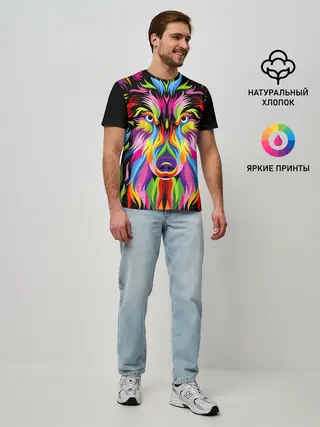 Мужская базовая футболка / Neon wolf