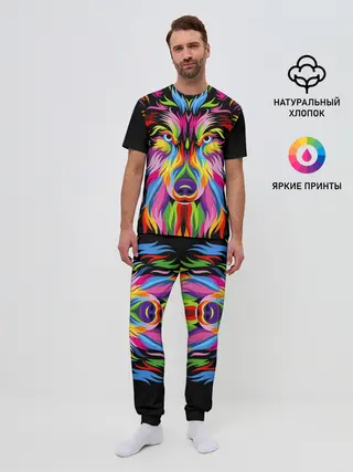 Мужская пижама с брюками / Neon wolf