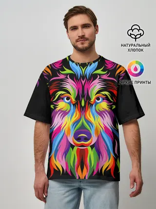 Мужская футболка оверсайз / Neon wolf