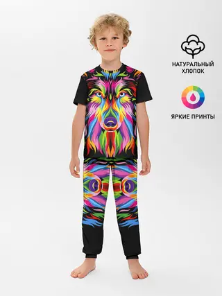 Детская пижама с брюками / Neon wolf