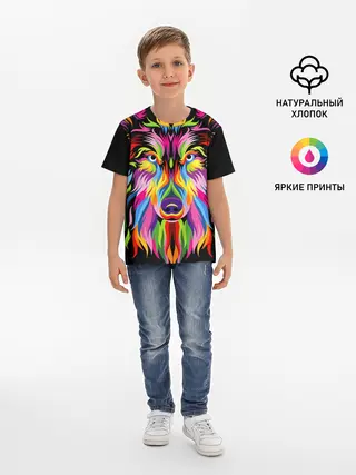 Детская базовая футболка / Neon wolf