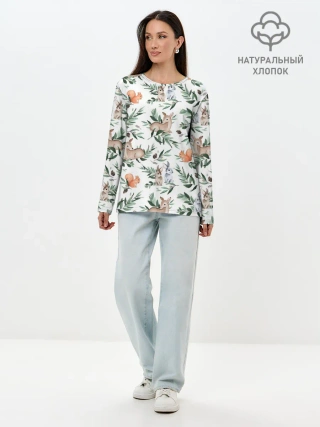 Лонгслив женский. Хлопок / Лесные животные
