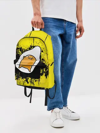 Рюкзак джинсовый / веселое яйцо на черном фоне
