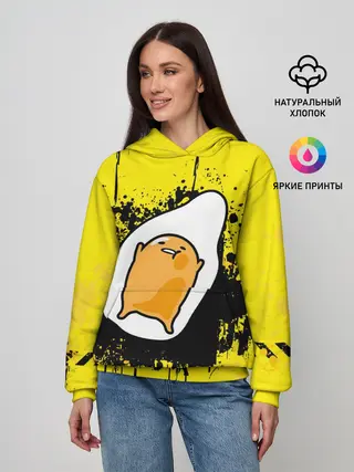 Худи мужской база хлопок / веселое яйцо на черном фоне