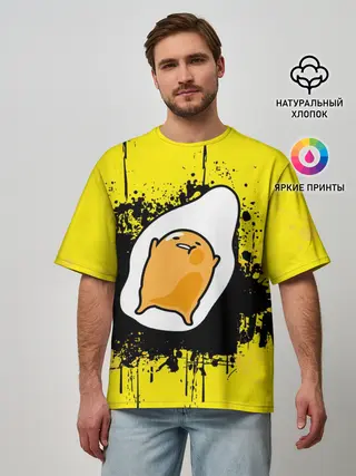 Мужская футболка оверсайз / веселое яйцо на черном фоне