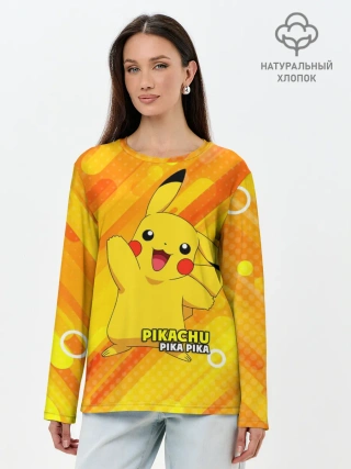 Лонгслив женский. Хлопок / Pikachu Pika Pika