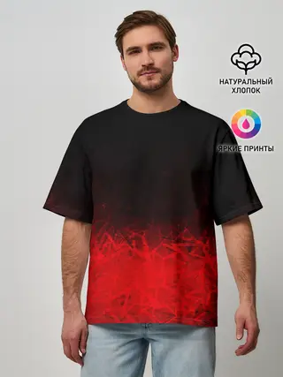 Мужская футболка оверсайз / КРАСНО-ЧЕРНЫЙ ГРАДИЕНТ