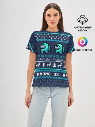 Женская базовая футболка / AMONG US НОВОГОДНИЙ.