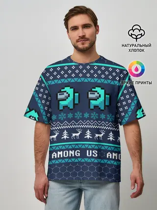 Мужская футболка оверсайз / AMONG US НОВОГОДНИЙ.