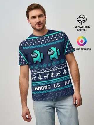 Мужская базовая футболка / AMONG US НОВОГОДНИЙ.