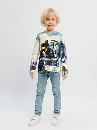Мужской лонгслив базовый / Зимний Майнкрафт