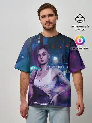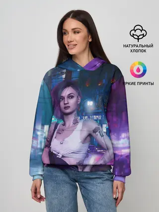 Худи мужской база хлопок / Lady. Cyberpunk 2077