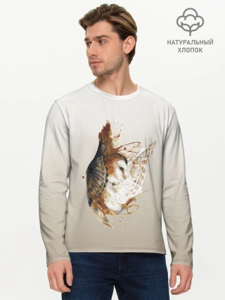 Мужской лонгслив базовый / летящая сова рисунок