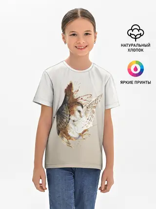 Детская базовая футболка / летящая сова рисунок