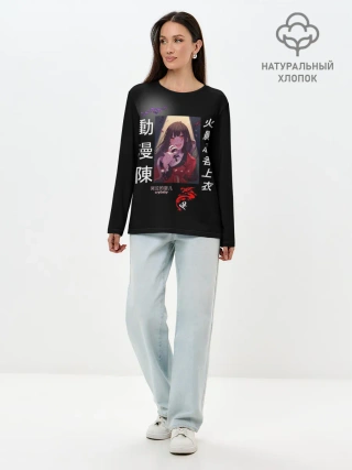 Лонгслив женский. Хлопок / Аниме Школьница с Иенроглифами
