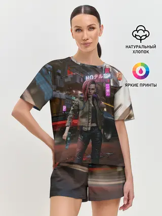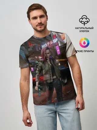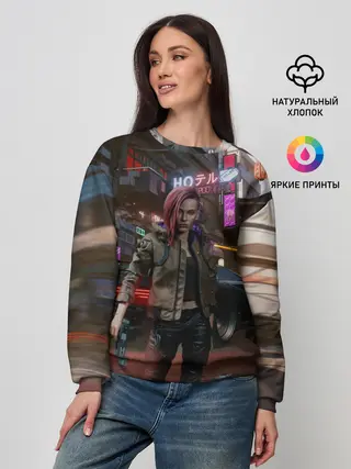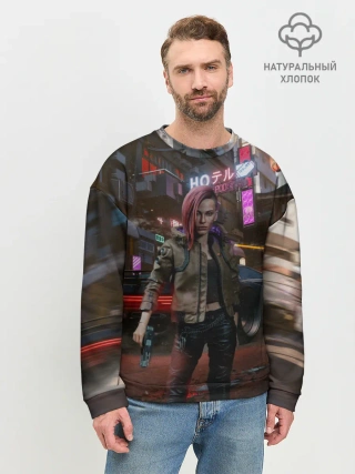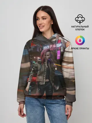 Худи мужской база хлопок / Lady. Cyberpunk 2077