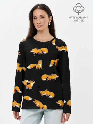 Лонгслив женский. Хлопок / Лисы