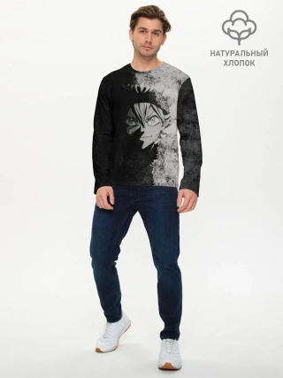Худи мужской база хлопок / Логотип Черного Клевера в дымке