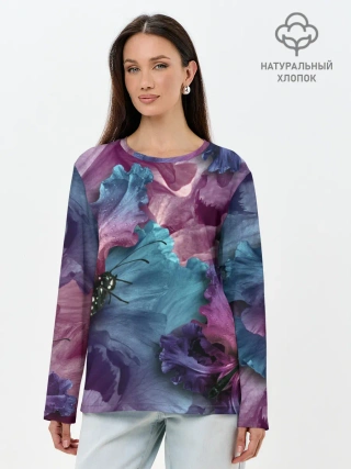 Лонгслив женский. Хлопок / Цветы