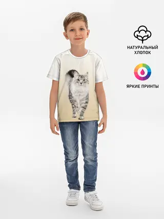 Мужская футболка оверсайз / Пушистый котик реалистичный