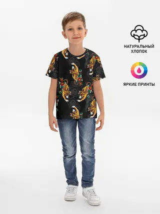 Детская базовая футболка / Японский стиль - тигры
