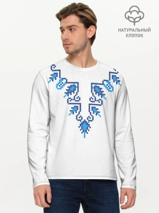 Мужской лонгслив базовый / Славянский узор сине-голубой