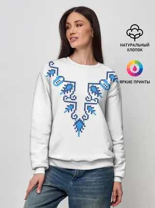 Мужской свитшот базовый / Славянский узор сине-голубой