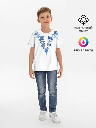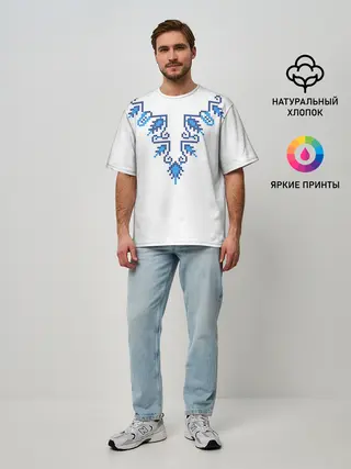 Мужская футболка оверсайз / Славянский узор сине-голубой