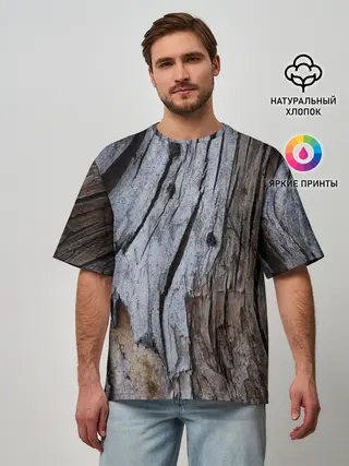 Мужская футболка оверсайз / Древесная кора