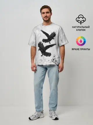 Мужская футболка оверсайз / Gothic crows
