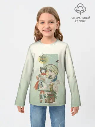 Детский лонгслив / девушка кимоно зима Япония кот