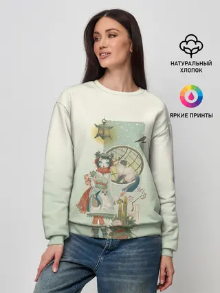 Женский свитшот / девушка кимоно зима Япония кот