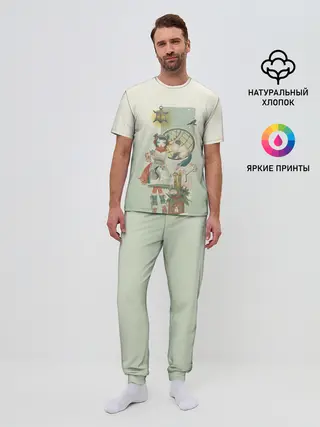 Мужская пижама с брюками / девушка кимоно зима Япония кот