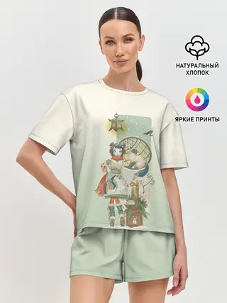 Женская пижама с шортами / девушка кимоно зима Япония кот