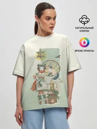 Женская футболка оверсайз / девушка кимоно зима Япония кот