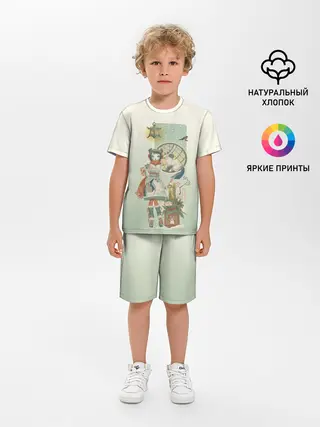 Детская пижама с шортами / девушка кимоно зима Япония кот