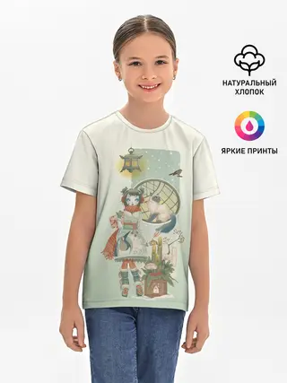 Детская базовая футболка / девушка кимоно зима Япония кот