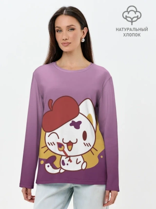 Лонгслив женский. Хлопок / кот художник творец
