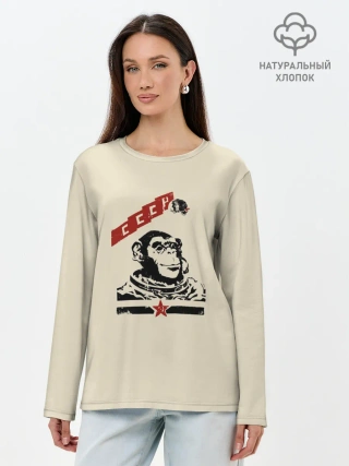 Лонгслив женский. Хлопок / Обезьяна космонавт