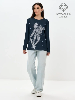 Лонгслив женский. Хлопок / Космический Скейтбординг